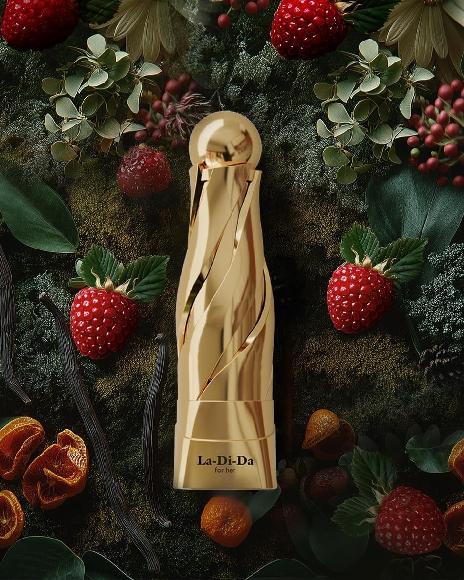 La Di Da for Her is a complex, refined and classy fragrance pulsating with passionate energy. It is a mesmerising elixir of feminine confidence and reserve served in a delightful measure. As the fragrance meanders, layer upon layer of emotion unfolds, revealing depth beyond the first impression.