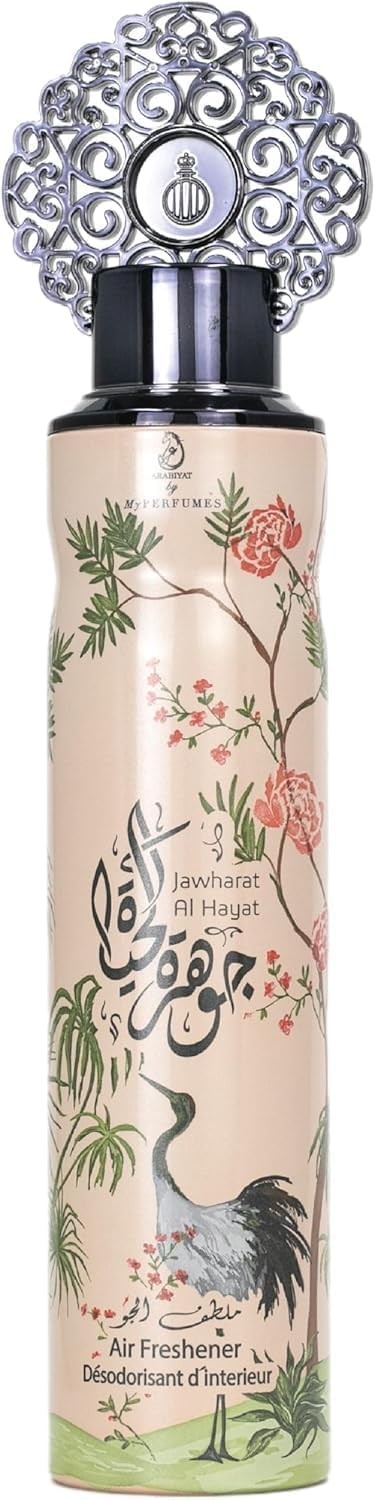 Elevate your living space with the captivating aroma of this Jawharat Al Hayat air freshener from Arabiyat. Crafted in the UAE, this exquisite fragrance captures the essence of nature with its delicate floral and herbal notes. The intricate design on the bottle, adorned with vibrant illustrations of blossoming flowers and lush greenery, adds a touch of elegance to any room. With a generous 300ml capacity, this air freshener effortlessly permeates the atmosphere, creating a serene and inviting ambiance. Indulge in the luxurious scent and embrace the tranquillity it brings to your surroundings. This pack includes three bottles, ensuring you have a lasting supply of this captivating fragrance.